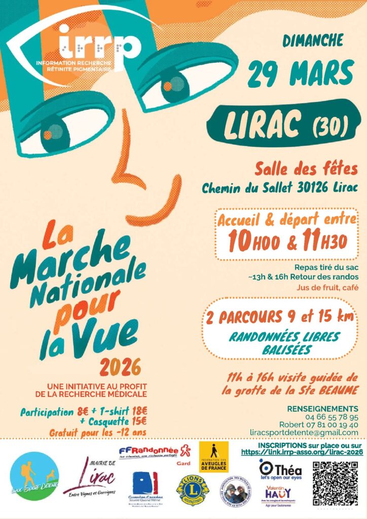 Marche pour la vue 2026 à Lirac le 29 mars 2026 : la première édition dans le Gard pour 2026 !